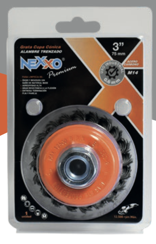 Grata Copa Cónica Trenzada de Acero Carbono 3”Grata Copa Cónica Trenzada de Acero Carbono 3”