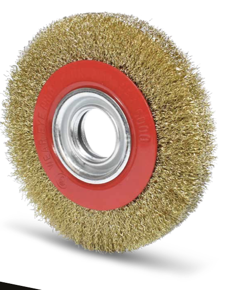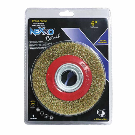 Grata de acero ondulado diseñada para trabajos de limpieza y pulido de materiales sobre esmeriles de banco.