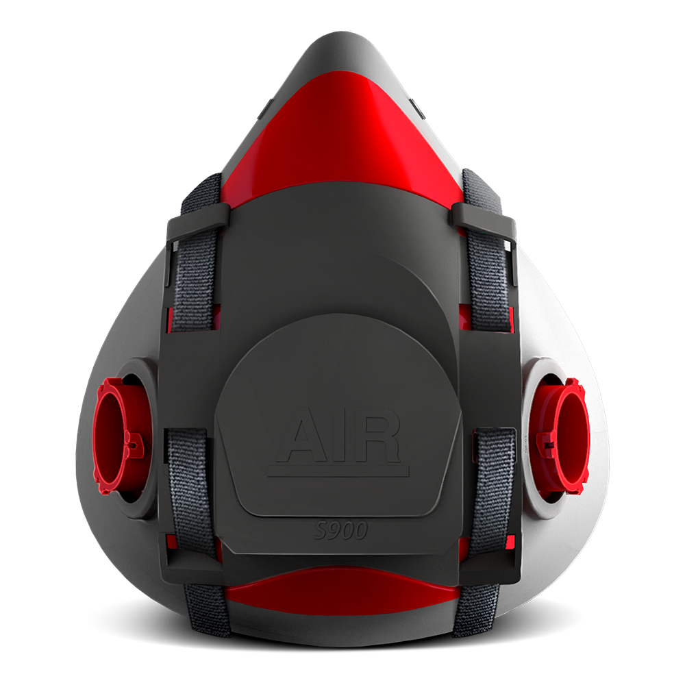 Respirador de medio rostro AIR Serie S900, con sello facial de TPR de alta suavidad, liviano, con arnés ajustable y sistema de ajuste deslizable.